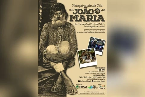 IMPRENSA/Tibagi - Estão abertas as inscrições para a tradicional peregrinação do Monge João Maria, que acontece no dia 19 de abri e reúne centenas de fiéis para um percurso de aproximadamente 14 quilômetros, partindo da Secretaria de Turismo (Setur), até o olho d’agua por onde o monge passou em Tibagi.