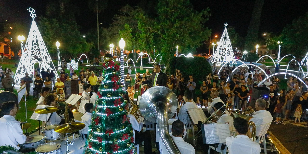 IMPRENSA/Tibagi - Na noite deste domingo (1), o espírito natalino tomou conta de Tibagi. Um concerto da banda Escola José da Cruz Machado, apresentação dos alunos do Departamento de Cultura e a chegada do Papai Noel marcaram o evento que reuniu muitas pessoas na Praça Leopoldo Mercer. O prefeito Rildo Leonardi, a vice - prefeita, Helynez Santos Ribas, conduziram a noite especial.