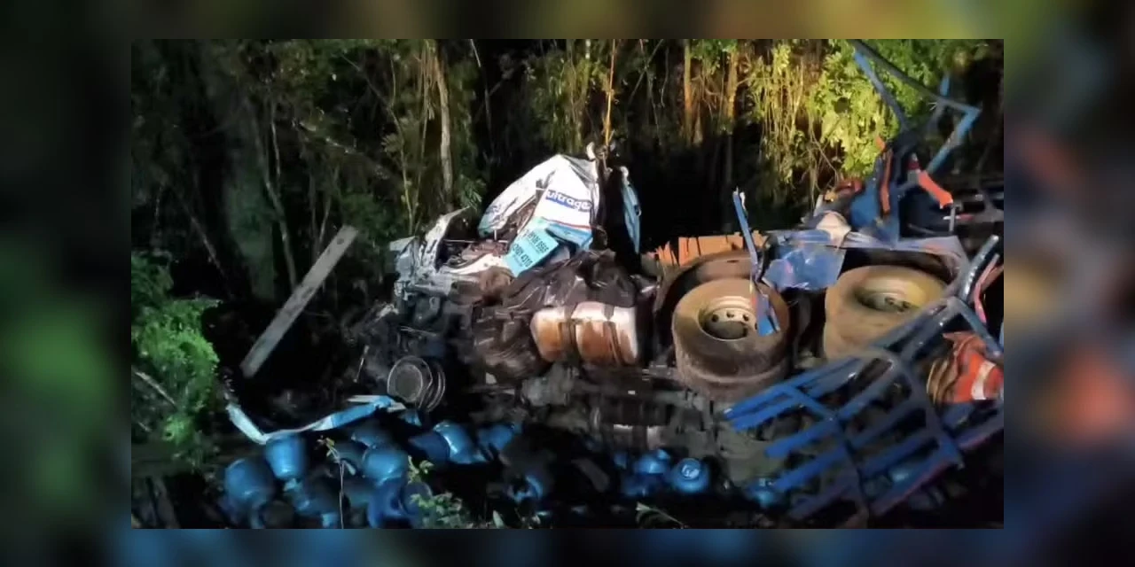 O homem estava dirigindo um veículo carregado com botijões de gás liquefeito de petróleo (GLP) - o gás de cozinha - e tombou em um barranco à beira da rodovia. O corpo ficou preso às ferragens, e ele não resistiu aos ferimentos.