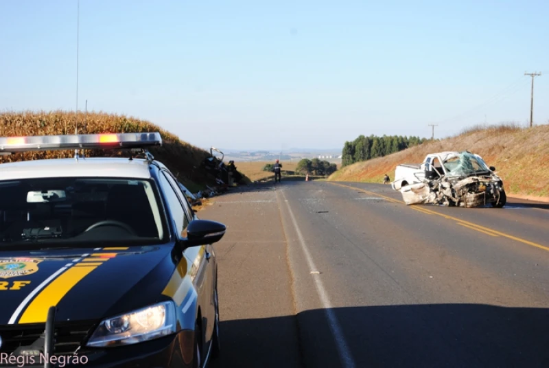 REDAÇÃO/Correio dos Campos – Um grave acidente foi registrado no início da manhã de hoje (14), na BR 153, entre os municípios de Ventania e Tibagi, envolvendo uma Montana, de Irati, e um Gol, de Jaguariaíva, que se chocaram de frente durante uma ultrapassagem.