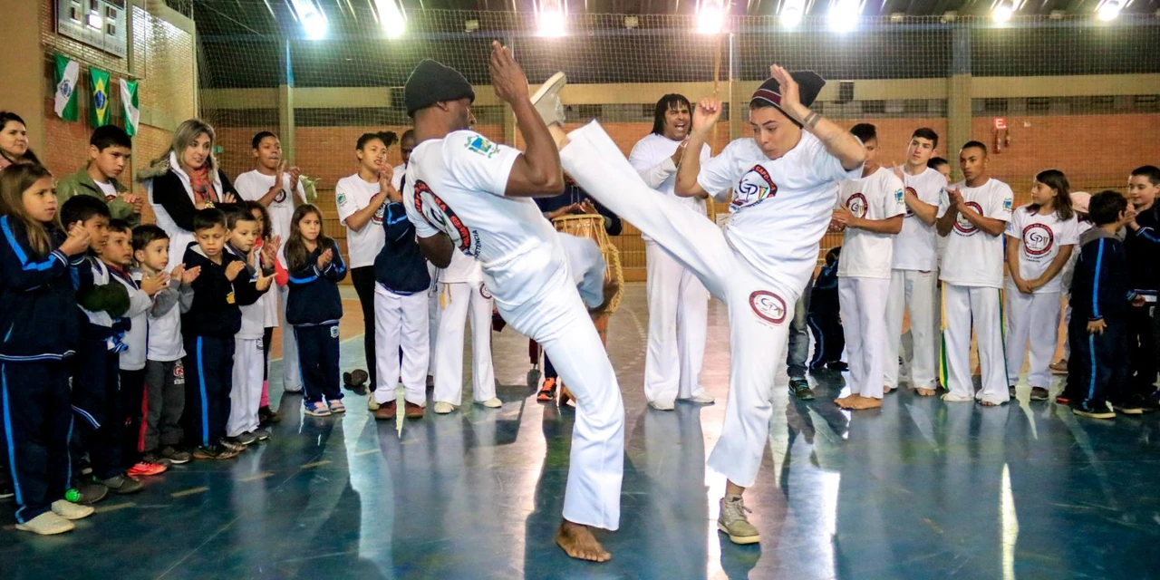 IMPRENSA/Tibagi - Nem a noite fria desta quinta-feira (12) desanimou os estudantes das escolas municipais de Tibagi, que compareceram ao aulão de capoeira do Professor e vereador de Curitiba Adilson Alves, conhecido como Mestre Pop Lainy, e do Mestre Nego Liso, de Tibagi.