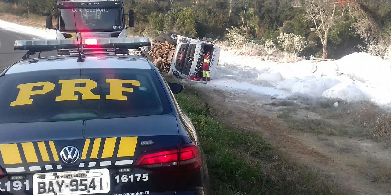 REDAÇÃO/Correio dos Campos – Um caminhão bitrem que transportava cal tombou no Km 239 da BR-153 em Tibagi. O fato foi registrado nesta quarta-feira (28), por volta das 7h. Segundo a Polícia Rodoviária Federal (PRF), o caminhão de Itaporunga (SC) seguia no sentido de Ponta Grossa a Tibagi, quando tombou fora da faixa. A pista chegou a ser interditada, mas foi totalmente liberada perto do meio-dia. O motorista de 41 anos teve ferimentos graves. A causa do acidente ainda é apurada.