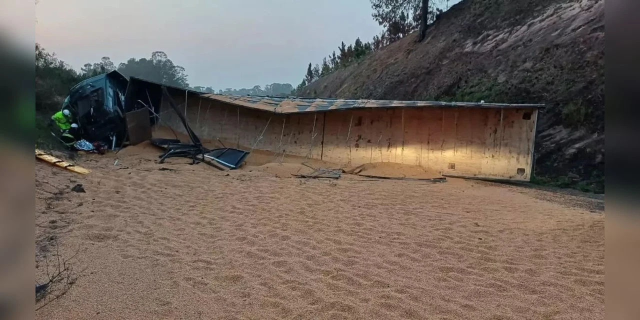 A carreta estava carregada com soja e a carga ficou espalhada na BR-373. Para atendimento da ocorrência, a pista chegou a ficar totalmente bloqueada, mas por volta das 7h, agentes da Polícia Rodoviária Federal (PRF) liberaram uma faixa e iniciaram a liberação do fluxo no sistema pare e siga.