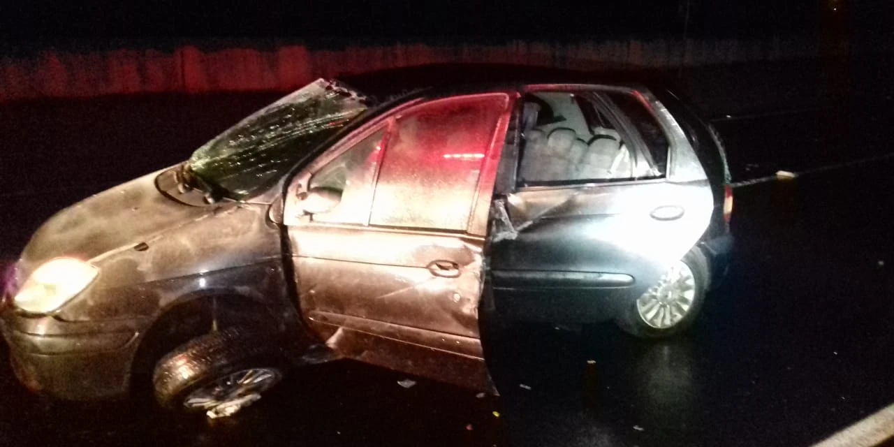 Um carro Renault/Scénic, com placas de Colombo/PR, estava seguindo sentido Tibagi-Ponta Grossa quando a condutora perdeu o controle da direção, batendo várias vezes na canaleta até capotar e parar sobre a pista.