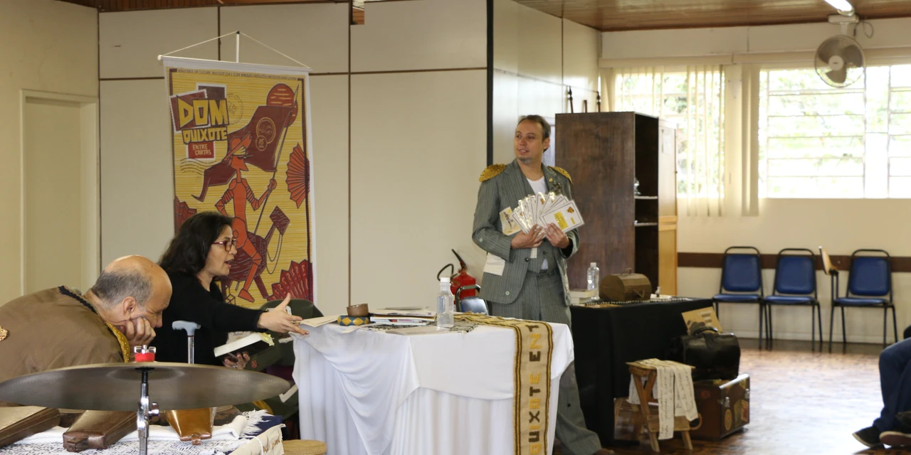 A primeira parada do evento no Paraná foi em Castro: realizado na Secretaria de Educação, o ‘Dom Quixote entre Cartas’ contou com a presença de professores da rede municipal, que realizaram leituras em voz alta e tiveram a companhia de música ao vivo, executadas por um elenco composto por arte-educador, atriz e um músico. “Durante o encontro, convidamos a plateia a participar da leitura compartilhada de diversos trechos, e a encenar uma das suas aventuras”, conta Élida Marques, idealizadora do projeto.