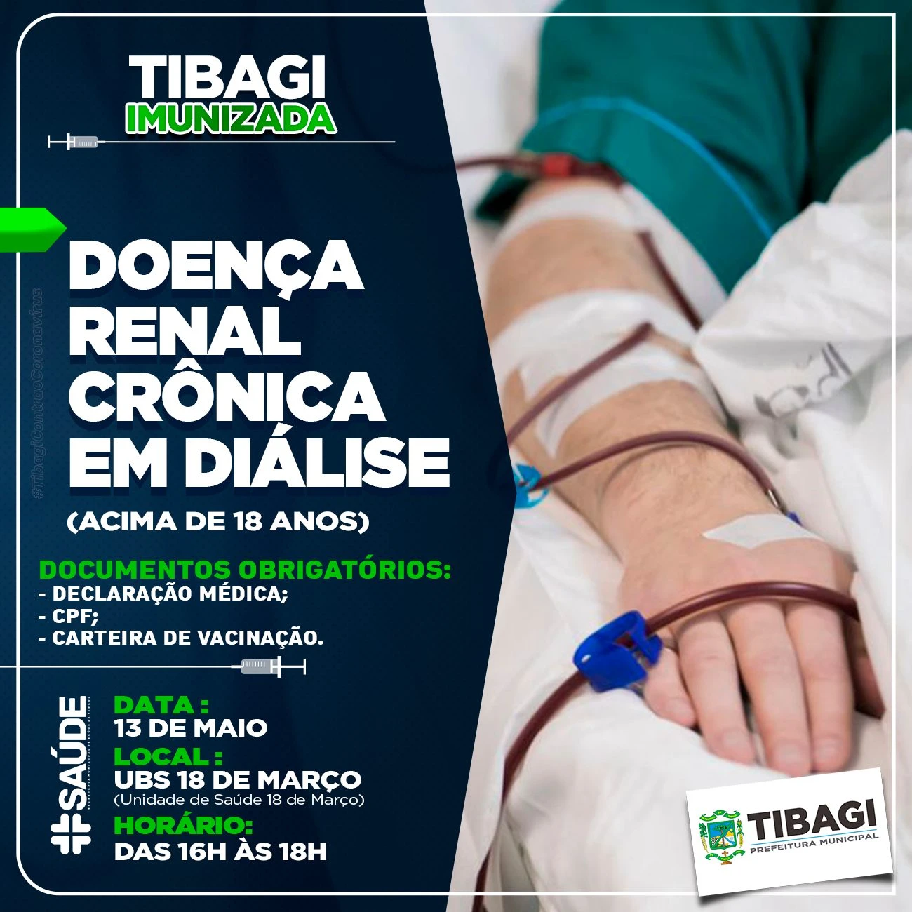 COM ASSESSORIAS - Nesta quinta-feira (13) a Secretaria de Saúde de Tibagi dá início a vacinação dos pacientes que possuem algum dos tipos de comorbidades definidos pelo Ministério da Saúde. O imunizante será aplicado em sistema drive thru na UBS 18 de Março das 16h às 18h.