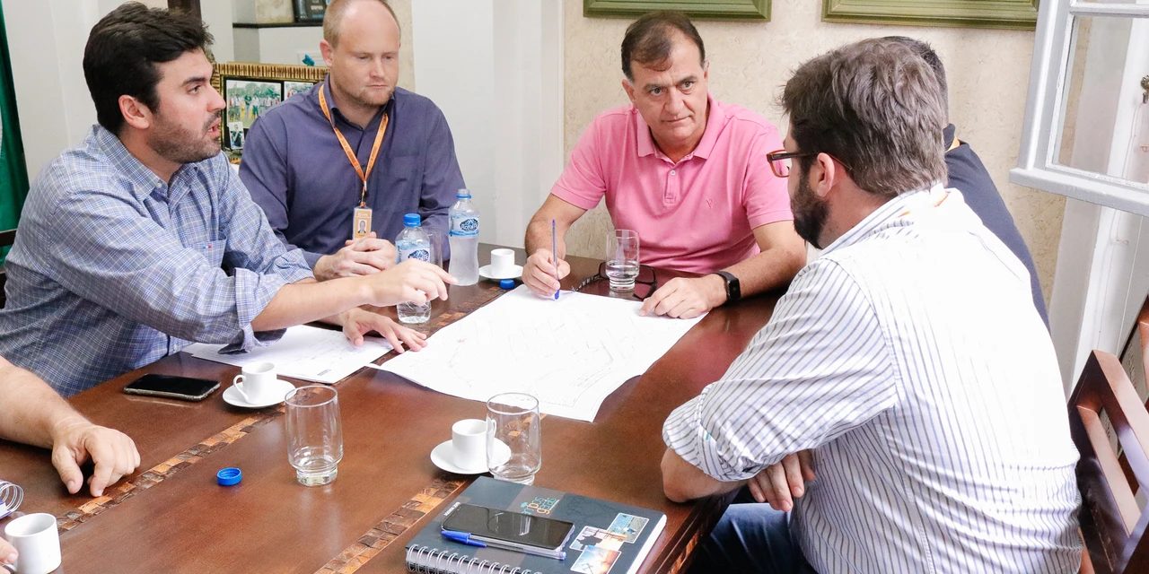 IMPRENSA/Tibagi - O prefeito Rildo Leonardi recebeu o gerente da Copel de Telêmaco Borba, Thiago Mierzva, o gerente de projetos da Copel Ponta Grossa, Fabio Bakai, o projetista da Copel, João Luiz, e o representante da UHE Tibagi, Rodrigo Furst para uma reunião sobre as obras da Subestação 138 kV (quilovolts) da Copel no município nesta segunda-feira (01), no Palácio do Diamante. A obra, que acontece na Rua Frei Gaudêncio, é um investimento de R$ 20 milhões da Copel no município e contempla a construção da nova subestação e também a troca de postes, cabos de rede, seis novos circuitos que diminuirão as quedas de energia no município e será responsável pela distribuição da energia gerada na UHE Tibagi Montante para Tibagi e região.