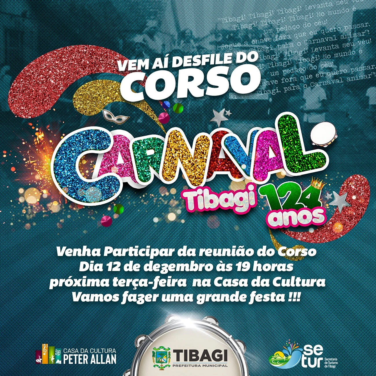 COM ASSESSORIAS - E o Carnaval 2024 de Tibagi começa a tomar forma! A Casa da Cultura Peter Allan marcou para a próxima semana a primeira reunião para discutir o formato do tradicional Desfile do Corso durante as festividades.