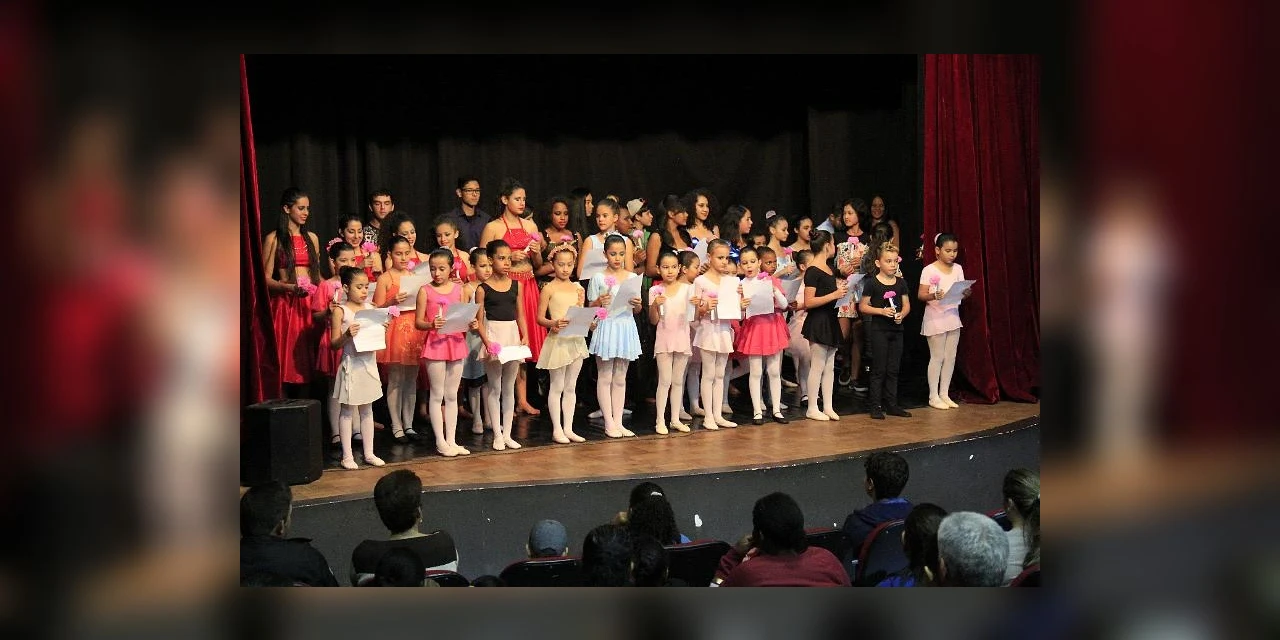 A noite desta quinta-feira (11) foi de muita emoção para as mães homenageadas pelas Escolas Municipais de Dança e de Música do Departamento de Cultura, durante a comemoração do Dia das Mães, no Teatro Tia Inália. O evento aconteceu a partir das 19h30 e cerca de 100 pessoas compareceram para prestigiar os alunos. Já na entrada, um dueto de sopro, recepcionava os convidados.