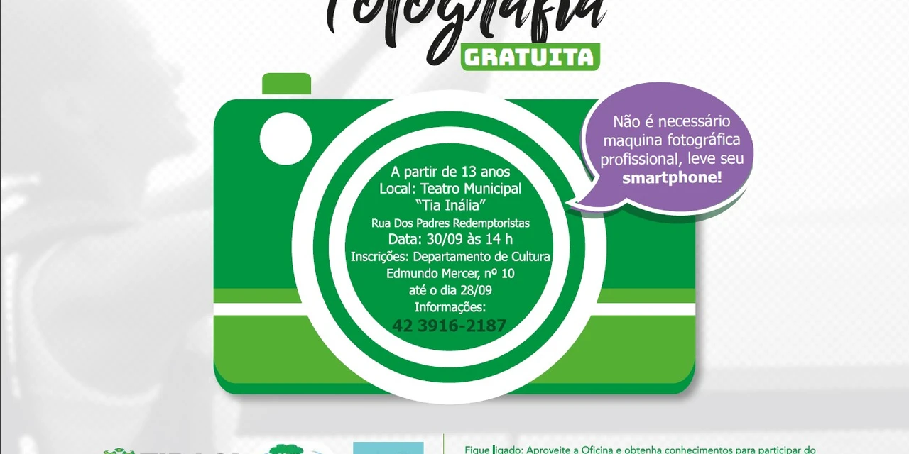 A inscrição para a oficina de fotografia pode ser feita até dia 28 de setembro, no Departamento de Cultura. Maiores informações podem ser obtidas pelo telefone 3916-2187.