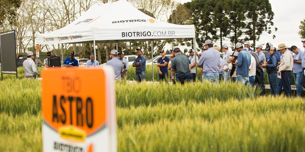 COM ASSESSORIAS - Antes mesmo de terminar a colheita de trigo de 2019, os produtores do Paraná já estão planejando as safras dos próximos anos. Em busca de novidades, cerca de 150 multiplicadores de sementes, recomendantes e profissionais da indústria moageira do Paraná participaram nesta terça-feira (24), do segundo dia de campo institucional da Biotrigo na safra 2019. O evento aconteceu em Tibagi (PR), município que possui a maior área de trigo semeada do Brasil, segundo o Instituto Brasileiro de Geografia e Estatística (IBGE), e que é referência na produção do grão. Entre as atividades, os participantes tiveram a oportunidade de avaliar o desempenho de mais de 20 cultivares e linhagens à campo e de participar de palestras temáticas, entre elas a evolução do melhoramento genético e o legado da introdução da genética francesa na cultura do trigo no Brasil, o mercado de trigos especiais, a importância do escalonamento da semeadura e o manejo integrado de plantas daninhas.