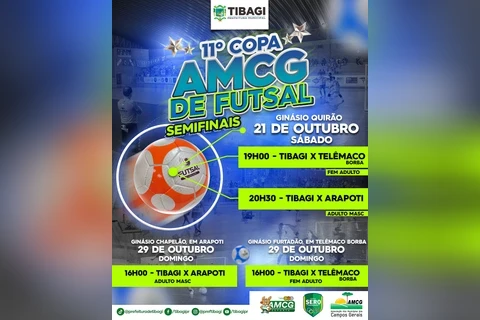 COM ASSESSORIAS - As equipes de futsal masculina e feminina de Tibagi se classificaram para as semifinais da 11ª Copa AMCG da modalidade. O mata-mata será disputado em jogos de ida e volta e as primeiras partidas acontecem no Ginásio Quirão no dia 21 de outubro (próximo sábado) , a partir das 19h.