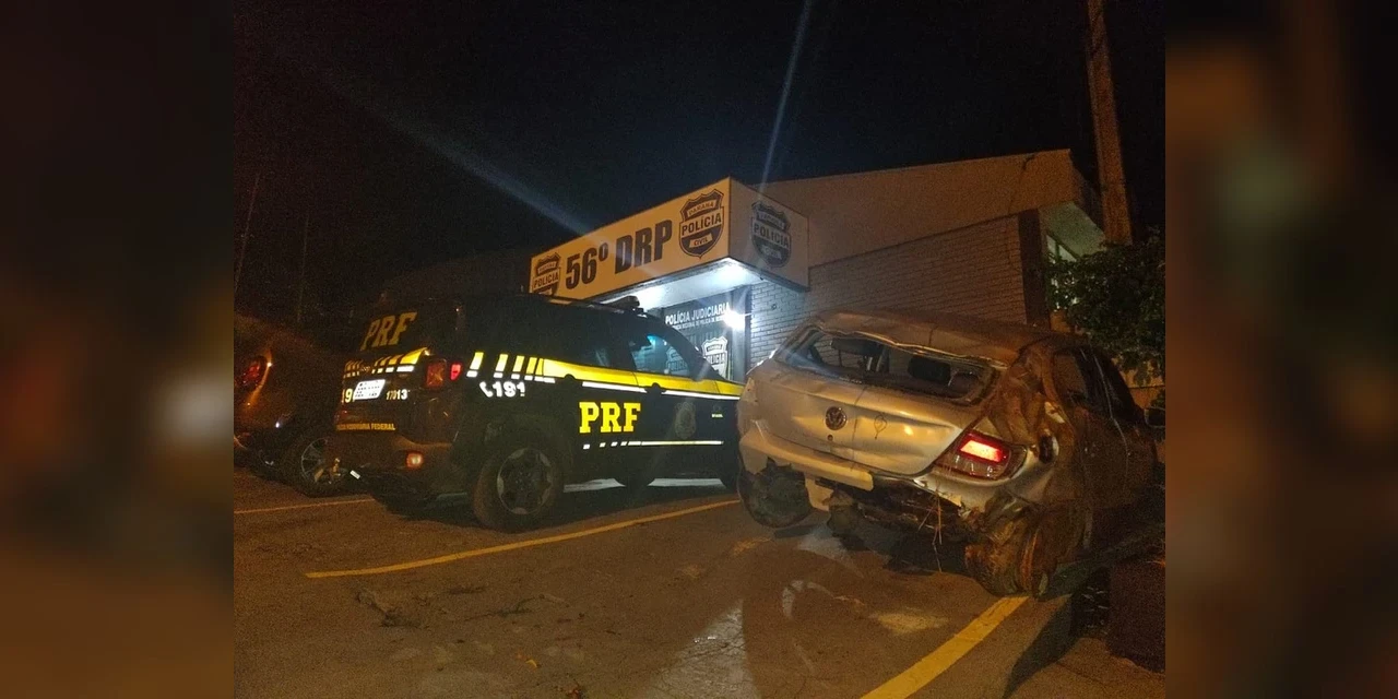 Segundo a PRF, o motorista capotou o carro na rodovia e fugiu do local, na segunda-feira (22). Após informações, ele foi localizado no quintal de uma casa na região e encaminhado para atendimento diante dos machucados.