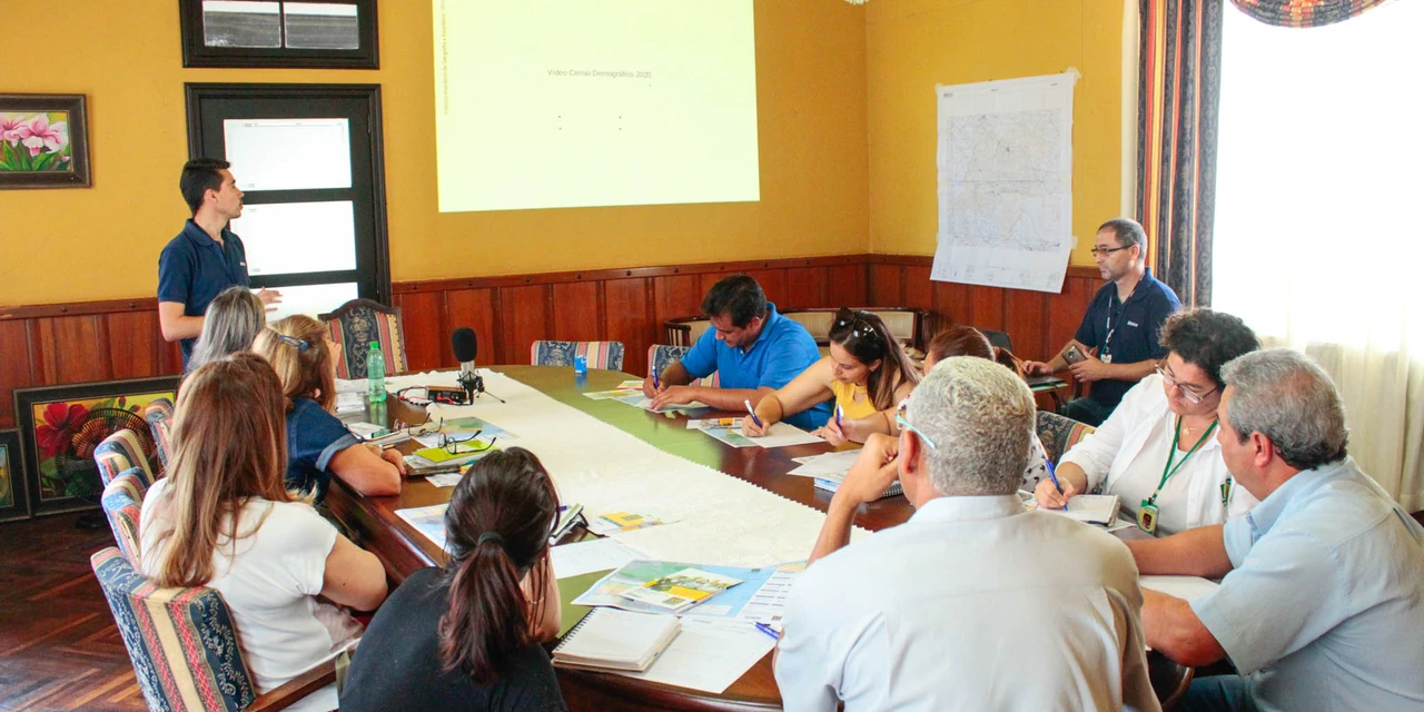 IMPRENSA/Tibagi - Na manhã desta quarta-feira (11) representantes do Instituto Brasileiro de Geografia e Estatística (IBGE), da agência de Telêmaco Borba, estiveram em Tibagi para conversar sobre o censo 2020. Durante o encontro com o executivo municipal foram apresentados os prazos para contratação de recenseadores e supervisores, que será de responsabilidade do IBGE. O edital com todas as informações será publicado em outubro.