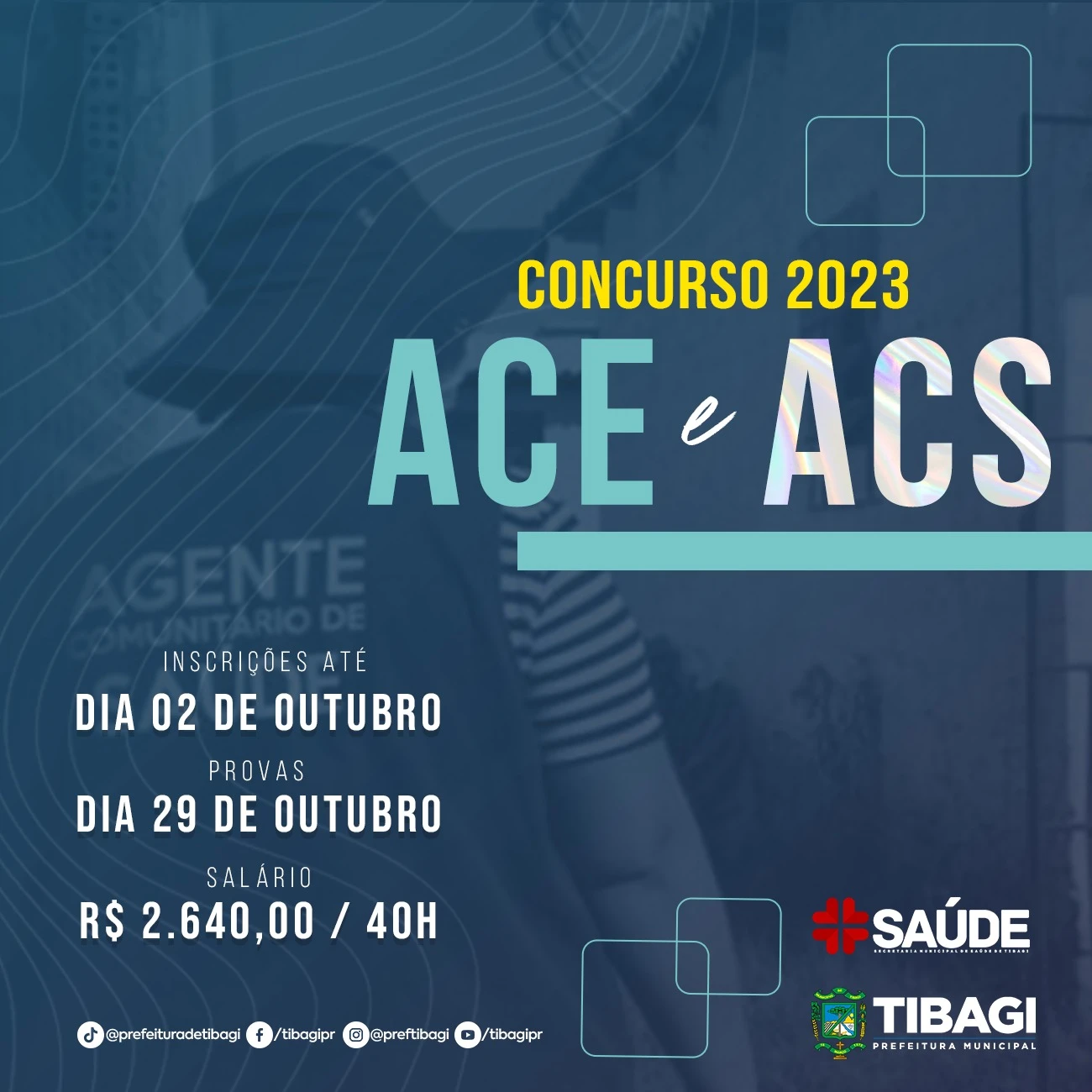 COM ASSESSORIAS - A Prefeitura de Tibagi informa que está aberto um novo concurso público para o preenchimento de três vagas para Agente Comunitário de Saúde (ACS) e outras três para Agente de Combate às Endemias (ACE).