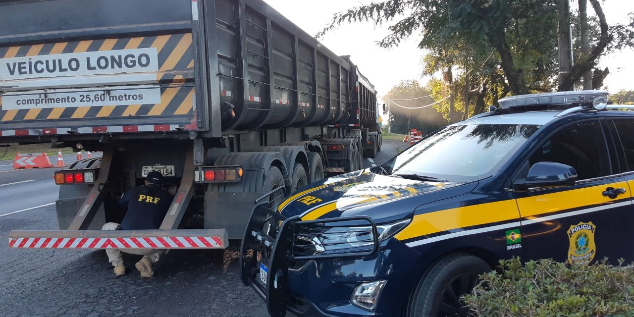 REDAÇÃO/Correio dos Campos - A Polícia Rodoviária Federal (PRF), estava na tarde de ontem (22) realizando uma fiscalização de rotina na BR 376, km 411, em frente à Unidade Operacional de Imbaú, que fica no município de Tibagi, quando abordou um caminhão M.benz/Axor 2644s6x4, cor branca o qual tracionava dois semi-reboques marca Sr/Pastre Srba 26, cor preta.