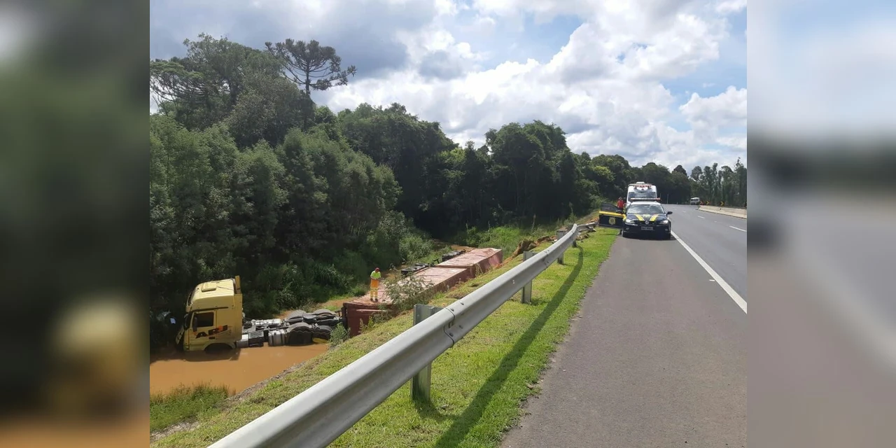 O bitrem caiu no rio e a PRF foi acionada para ajudar o motorista. O condutor, de 38 anos, ficou em estado grave e foi levado para o Hospital Municipal de Ponta Grossa.