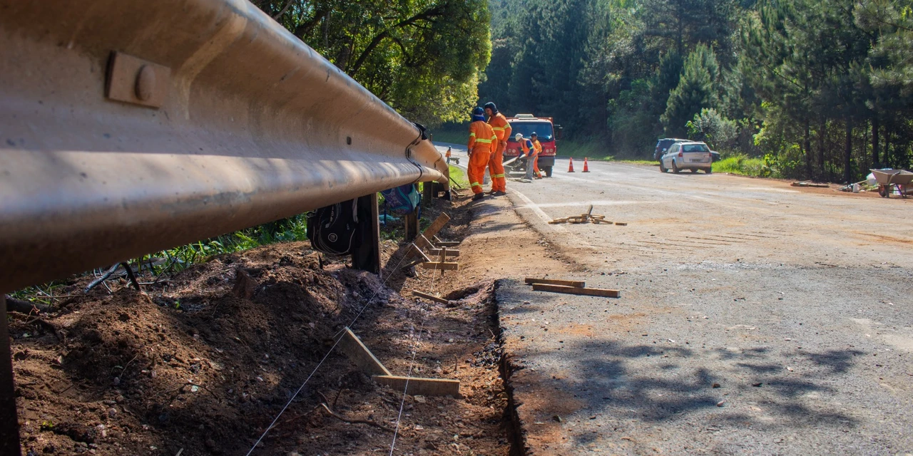 Foi possível observar que as cabeceiras da ponte já foram concretadas e pavimentadas, além dos reparos no asfalto da ponte sob o Rio Imbaú. No momento, a equipe trabalha nas canaletas laterais.