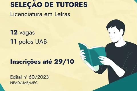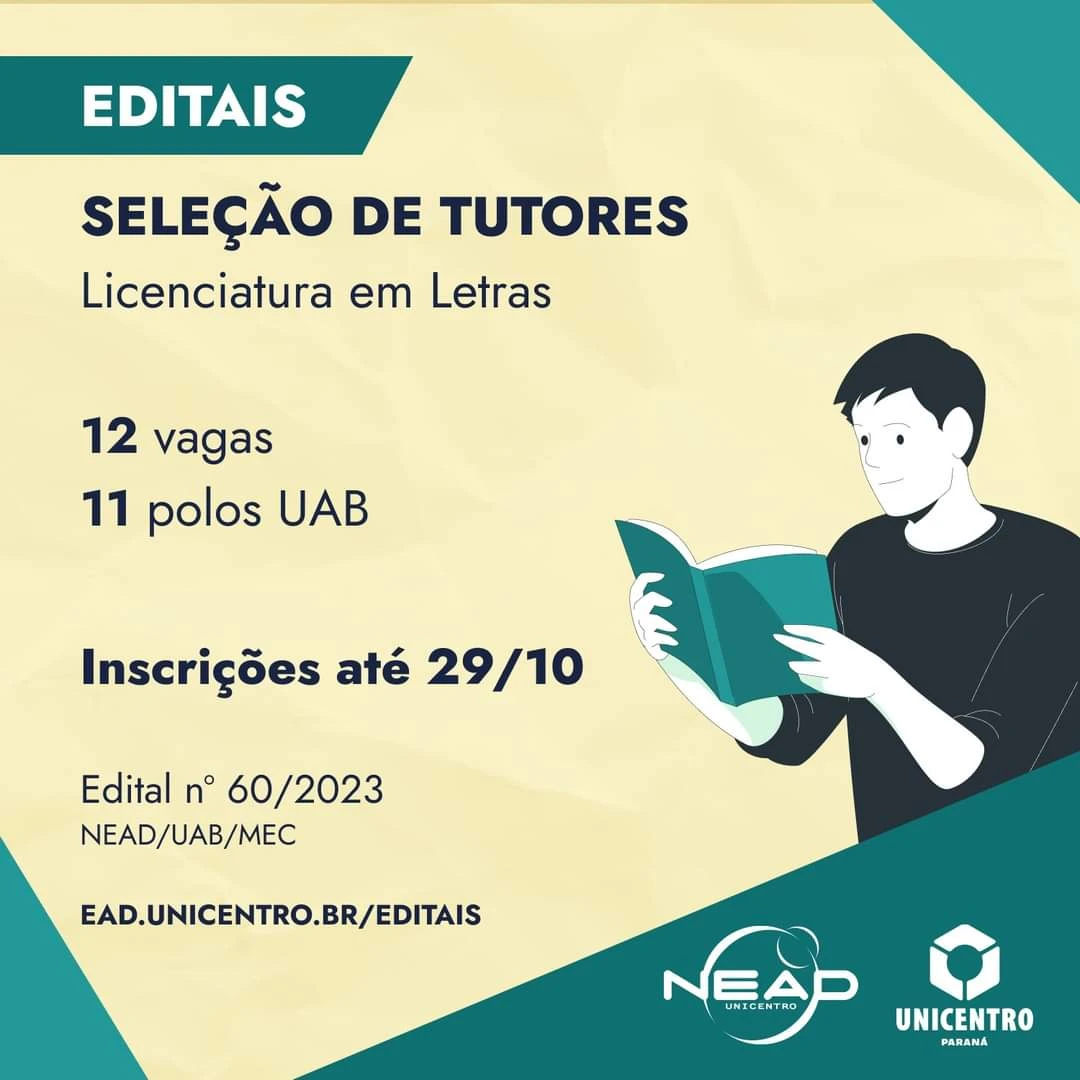 COM ASSESSORIAS - A Prefeitura de Tibagi, através do Polo da Universidade Aberta do Brasil (UAB) no município, informa que está aberta uma vaga de bolsista tutor para o curso de Letras/Português ofertado na unidade.