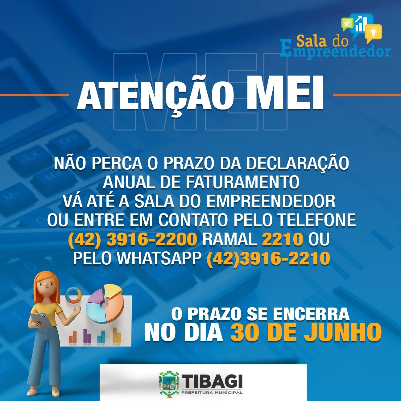 COM ASSESSORIAS - A Prefeitura de Tibagi, através da Secretaria de Indústria, Comércio e Trabalho e da Sala do Empreendedor, informa que o prazo final para a entrega da DASN-SIMEI (Declaração Anual de Faturamento do Simples Nacional), realizada pelos MEIs (Microempreendedores Individuais) é o dia 30 de junho de 2022.
