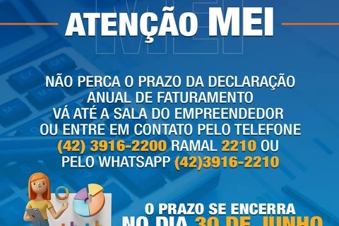 COM ASSESSORIAS - A Prefeitura de Tibagi, através da Secretaria de Indústria, Comércio e Trabalho e da Sala do Empreendedor, informa que o prazo final para a entrega da DASN-SIMEI (Declaração Anual de Faturamento do Simples Nacional), realizada pelos MEIs (Microempreendedores Individuais) é o dia 30 de junho de 2022.