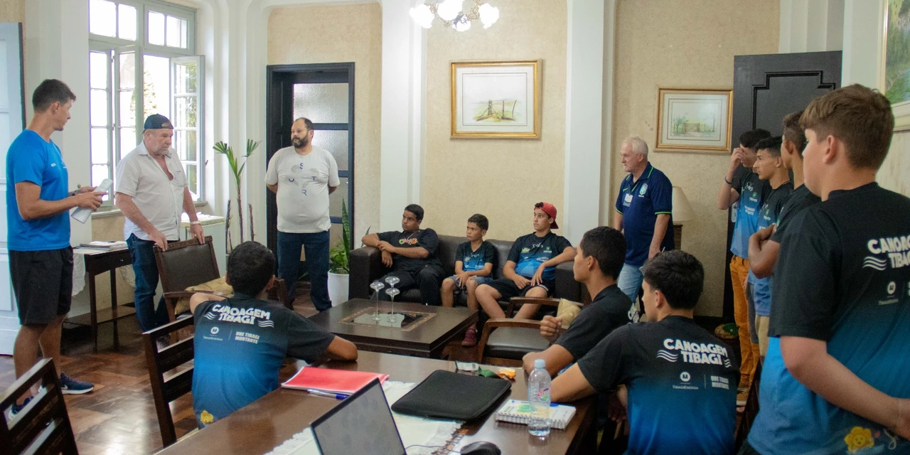 COM ASSESSORIAS - O Prefeito de Tibagi, Artur Butina, recebeu no gabinete do Palácio do Diamante na última semana os atletas tibagianos que participaram do Campeonato Panamericano e da Copa Brasil de Canoagem Slalom e Caiaque Cross, disputado na cidade de Três Coroas-RS.