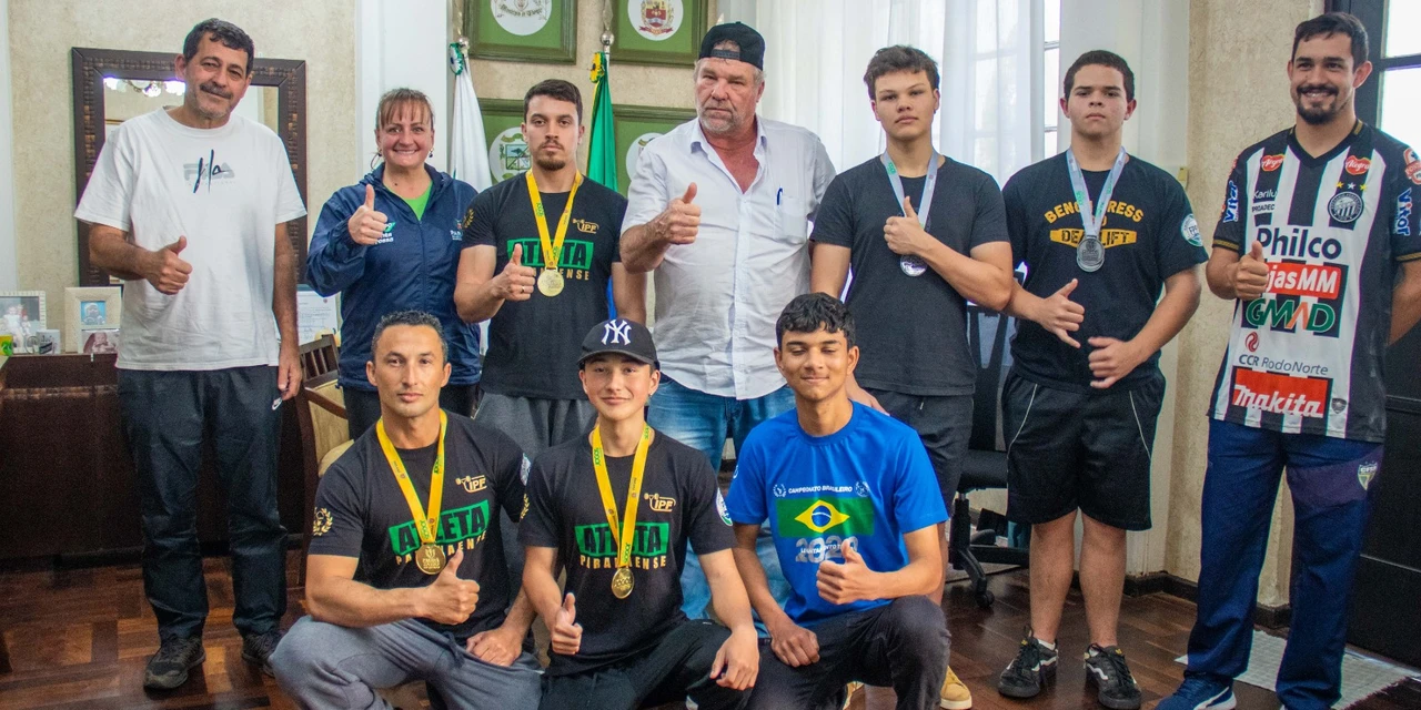 COM ASSESSORIAS - O prefeito de Tibagi, Artur Butina, recebeu na última semana os atletas tibagianos que participaram do Campeonato Estadual de Supino e Terra, modalidades do powerlifting. Ao todo, a equipe do município conquistou sete medalhas, sendo quatro de ouro e três de prata.