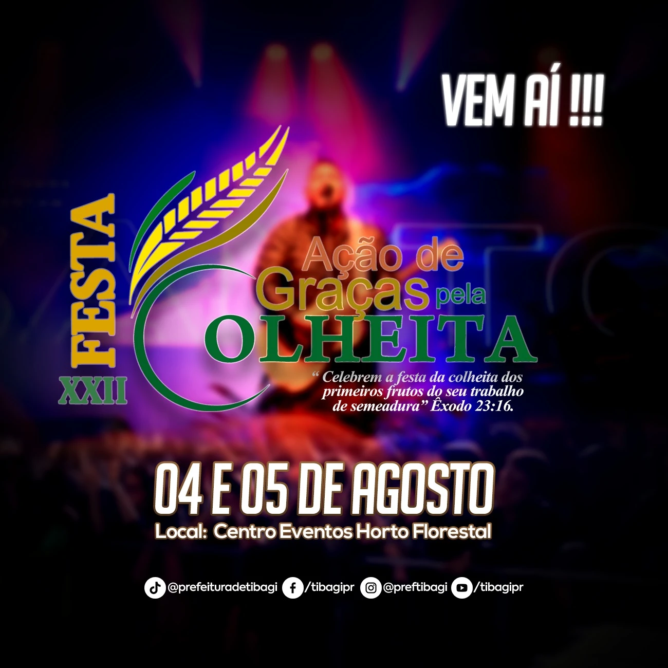 COM ASSESSORIAS - A Prefeitura de Tibagi informa que seguem os preparativos para a realização da XXII Festa de Ação de Graças pela Colheita. O evento é organizado em parceria com o Sindicato Rural do município, agricultores e igreja católica e evangélicas.