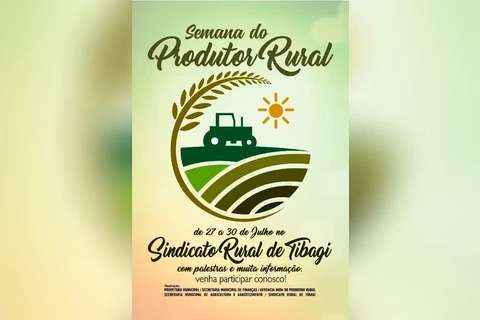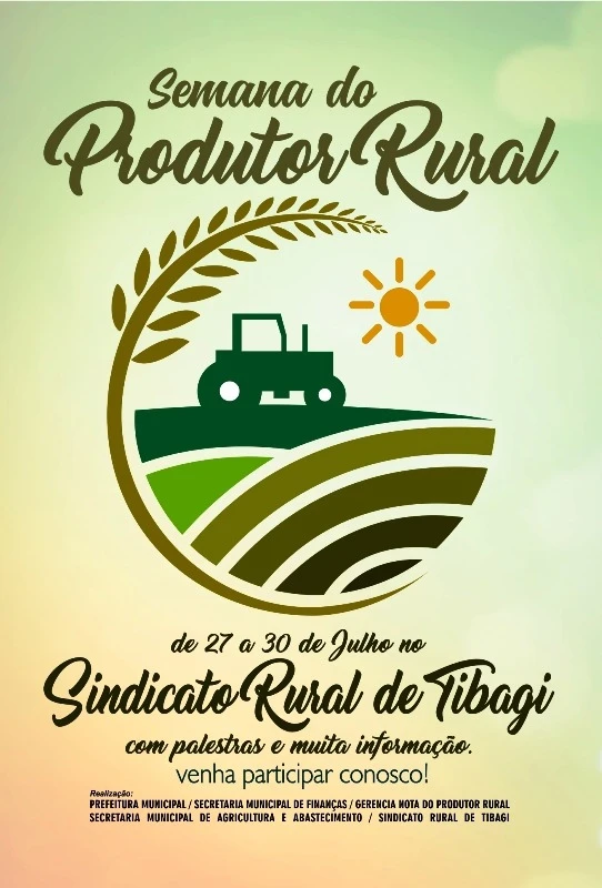 COM ASSESSORIAS - A Prefeitura, por meio das secretarias municipais de Agricultura e Finanças, juntamente com o Sindicato Rural de Tibagi, irão promover, de 27 a 30 deste mês, a Semana do Produtor Rural. O evento será realizado no auditório do Sindicato.