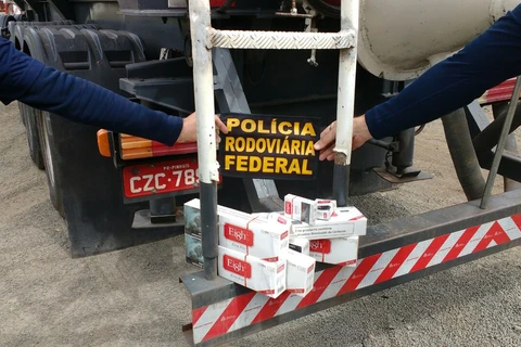 Os PRFs passaram então a fiscalizar o compartimento de carga e na parte superior, nas chamadas bocas, haviam placas que impediam a visualização completa do interior. Somente com a abertura na parte traseira pode se constatar que o veículo transportava cigarros contrabandeados, em princípio do Paraguai.