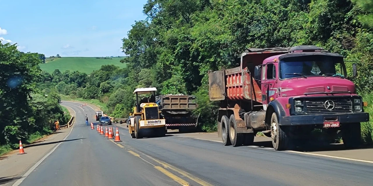 COM ASSESSORIAS - A solicitação para o reparo foi feita pela Secretaria de Planejamento de Tibagi junto ao Departamento Nacional de Infraestrutura de Transportes (DNIT). A obra está em andamento e exige a interdição parcial da pista, com o tráfego funcionando no modo pare-e-siga.