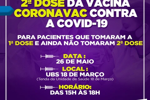 Já na quarta-feira (26) é a vez das pessoas que ainda não tomaram a 2ª dose da Coronavac.