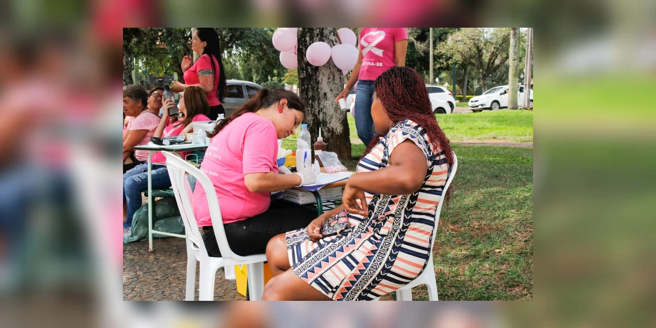IMPRENSA/Tibagi - A equipe da Secretaria Municipal de Saúde (SMS) realizou uma ação relativa ao outubro rosa, mês de prevenção e conscientização ao câncer de mama. Foram dadas orientações sobre a doença, realizado o teste rápido de doenças sexualmente transmissíveis (DSTs) e a aferição de pressão.