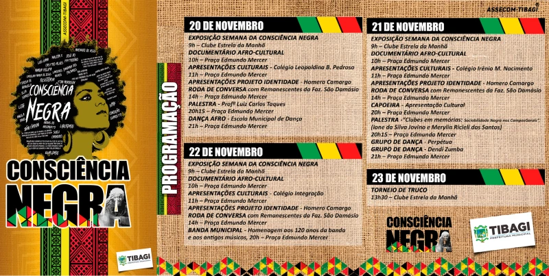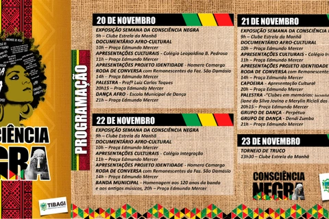 IMPRENSA/Tibagi - Nesta quarta-feira (20) é comemorado em todo o Brasil o dia Consciência Negra e para celebrar a data a Prefeitura preparou uma programação especial, com palestras, apresentações culturais com artistas locais e uma exposição, no Clube Estrela da Manhã.