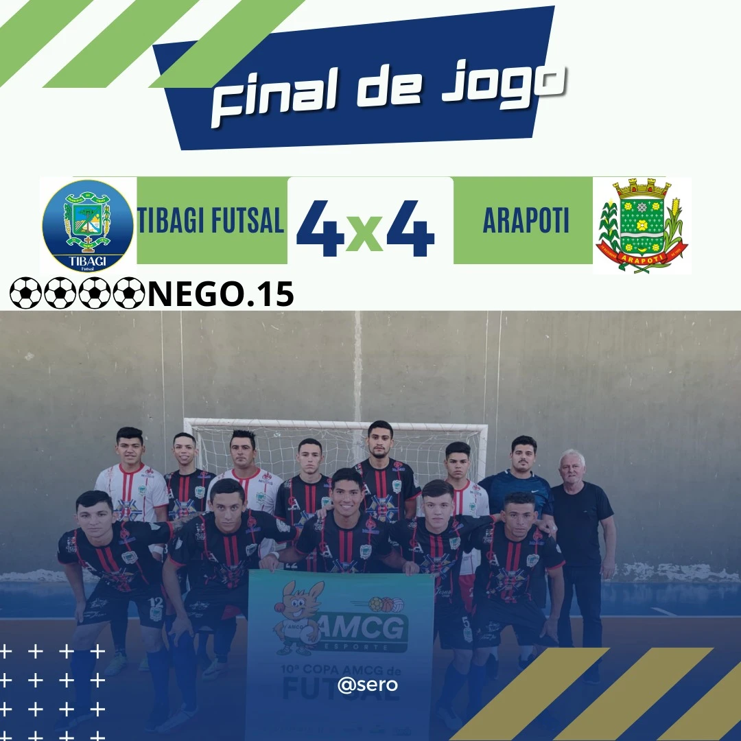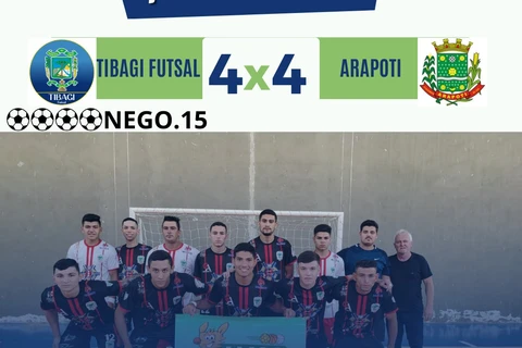 COM ASSESSORIAS - O futsal de Tibagi conquistou um ótimo resultado na noite da última quarta-feira (18). Em partida válida pelo jogo de ida das semifinais da Copa AMCG de Futsal, a equipe tibagiana arrancou um empate por 4x4 fora de casa contra Arapoti.