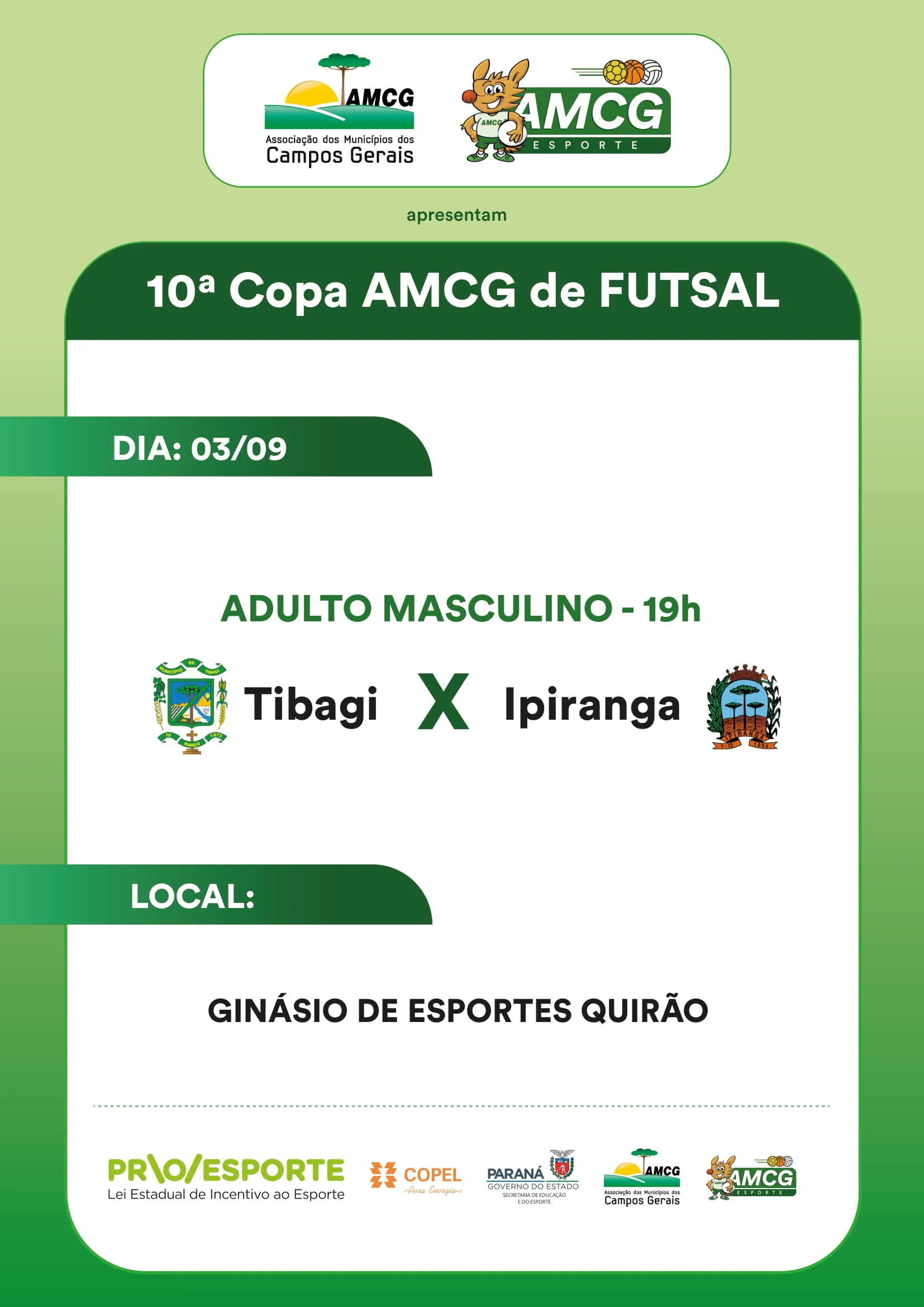 A 10ª Copa AMCG de Futsal conta com 11 equipes dividas em 2 grupos. Tibagi está no grupo A ao lado de Castro, Ipiranga, Carambeí e São João do Triunfo. O grupo B é composto por Imbau, Jaguariaíva, Arapoti, Piraí do Sul, Ventania e Telêmaco Borba.