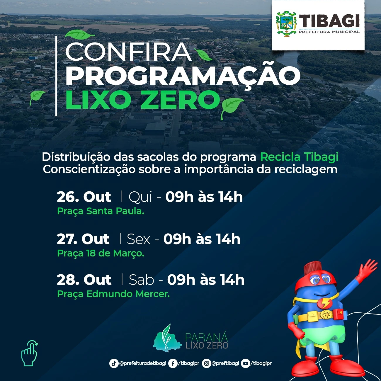 COM ASSESSORIAS - A Prefeitura de Tibagi, através da Secretaria de Meio Ambiente, participa da Semana Lixo Zero Paraná 2023. A ação tem como objetivo disseminar boas práticas e soluções para minimizar o impacto dos resíduos em nosso estado.