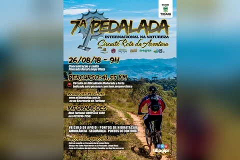 IMPRENSA/Tibagi - Tibagi receberá a sétima edição da Pedalada Internacional na Natureza, Circuito Rota da Aventura, dia 26 de agosto. As inscrições já estão abertas para o percurso de 42 quilômetros, que contemplará pontos turísticos e belezas naturais do município.