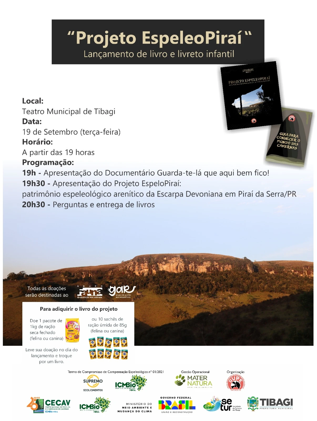 Durante o evento, será lançado o livro sobre o Projeto EspeloPiraí e também o livro infantil "Guia Para Conhecer o Mundo das Cavernas". Para adquirir o livro do projeto, basta realizar a o a doação de 1Kg de ração de cachorro/gato ou 10 sachês de ração úmida para cachorro/gato. O livro infantil será disponibilizado nas bibliotecas das escolas públicas do município.