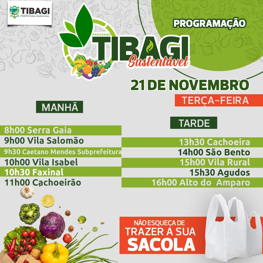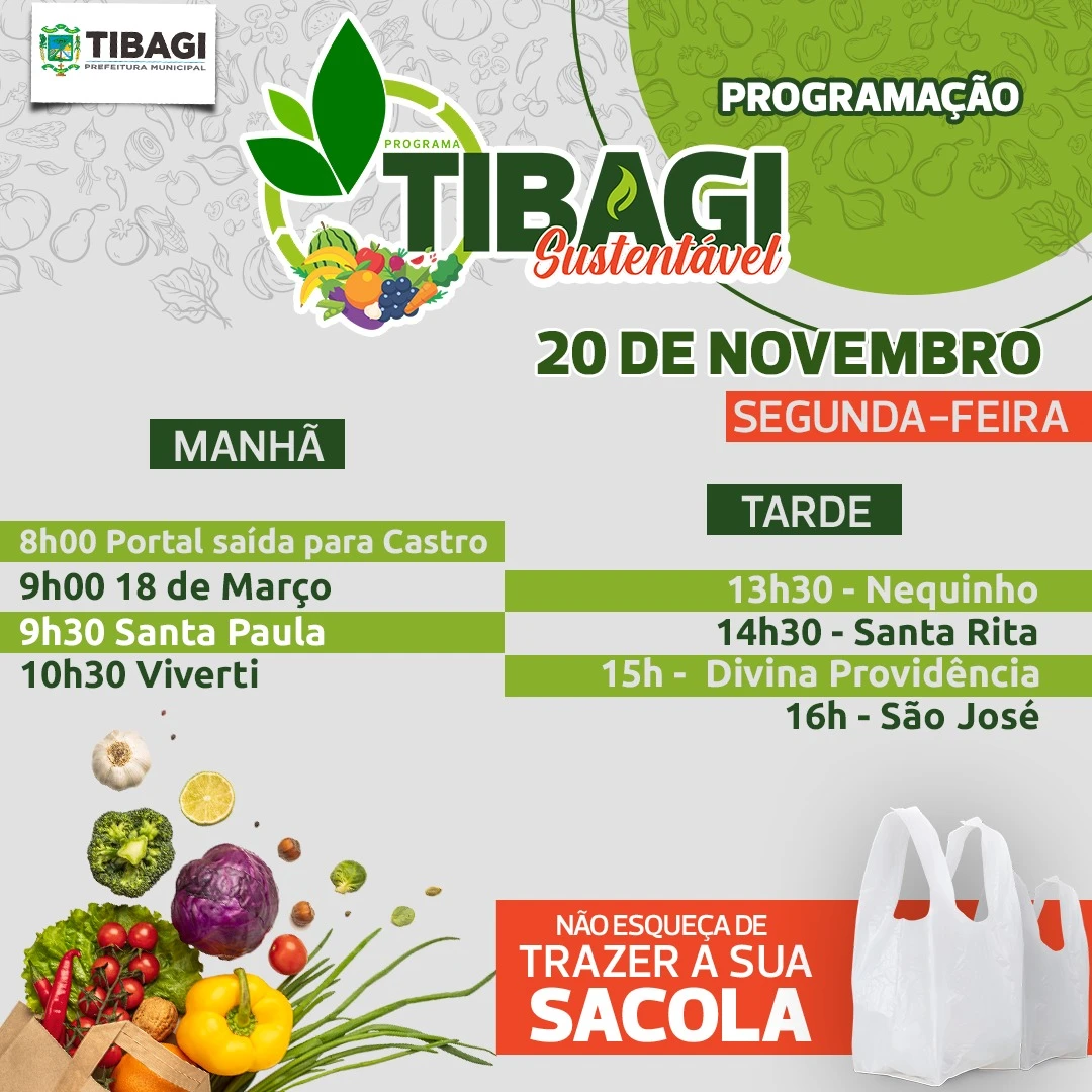 COM ASSESSORIAS - A Prefeitura de Tibagi, através da Secretaria de Agricultura, Pecuária e Abastecimento, informa que o programa Tibagi Sustentável acontece na próxima segunda (20) e terça-feira (21).