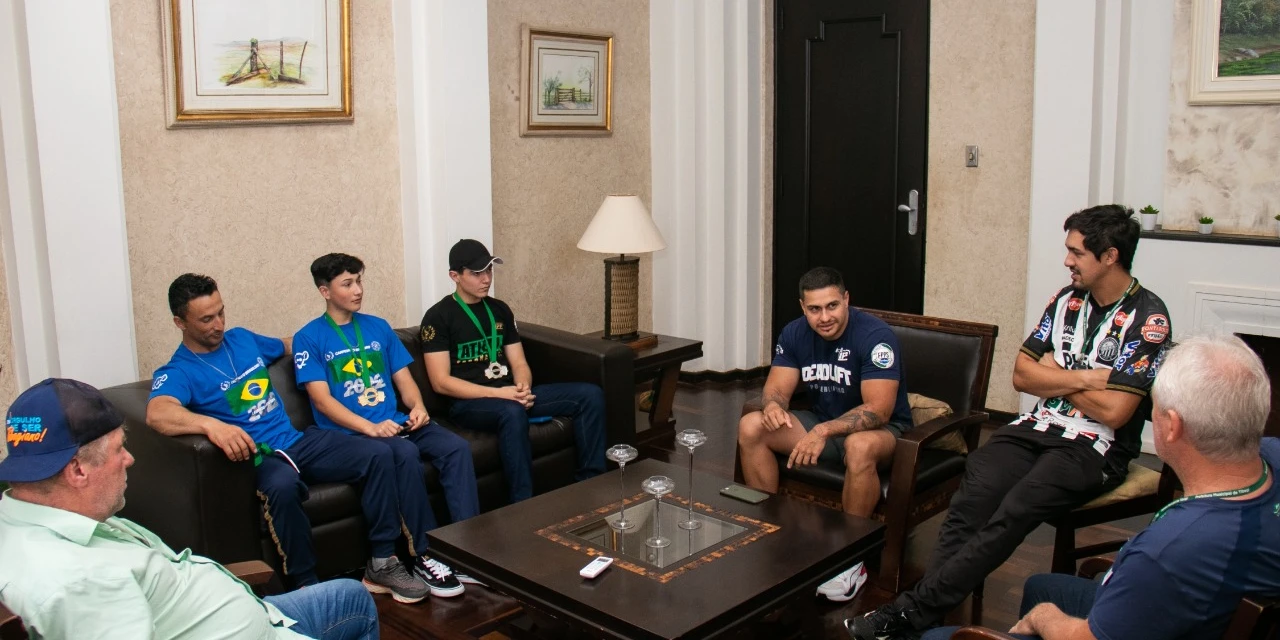 COM ASSESSORIAS - O prefeito de Tibagi, Artur Butina, recebeu na tarde da última terça-feira (10), os atletas tibagianos do powerlifting que conquistaram resultados expressivos no Campeonato Brasileiro de Terra, disputado no mês de dezembro em São Paulo-SP.