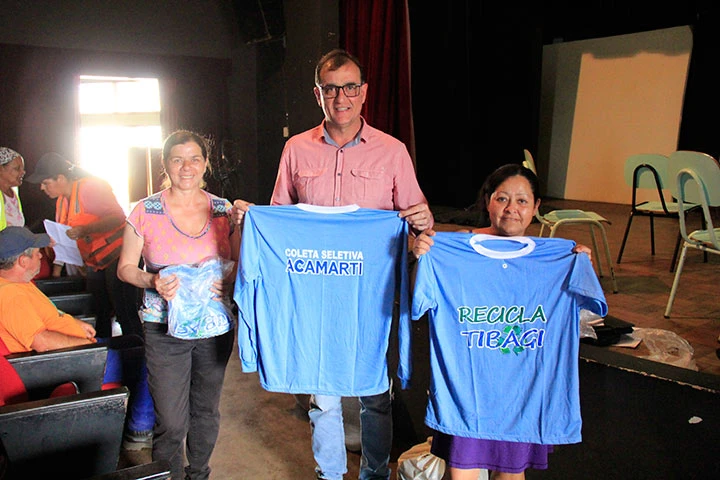 A Associação de Catadores de Materiais Recicláveis (ACAMARTI) realizou nesta sexta-feira (22) uma assembleia geral no Teatro Tia Inália. Um dos motivos da reunião foi a deliberação sobre a forma de ingresso na associação. A maioria concordou que a partir de agora quem tiver interesse deverá procurar a Agência do Trabalhador para fazer o cadastro. Quando houver vagas a própria agência encaminhará o candidato para entrevista. Ficou decidido também que haverá um período de adaptação antes do ingresso oficial na ACAMARTI. Na ocasião o prefeito Rildo Leonardi aproveitou para fazer a entrega das novas camisetas de trabalho para os catadores.