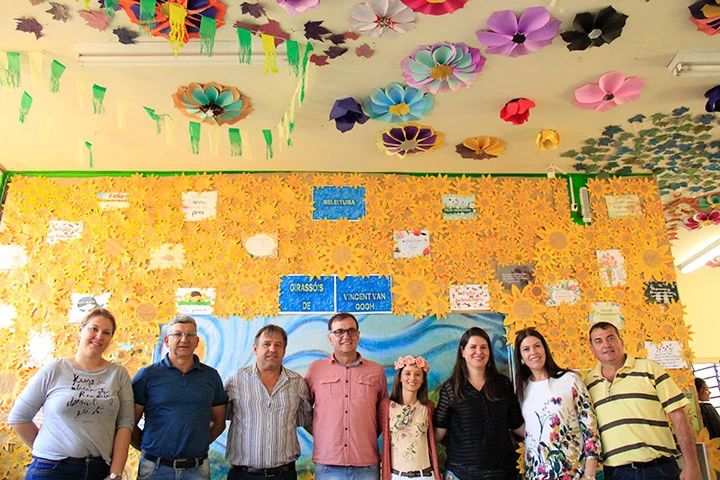 O Colégio Estadual Leopoldina Pedroso está com a exposição Primavera no saguão principal da escola para comemorar a chegada da estação mais bela do ano. O prefeito Rildo Leonardi, o secretário municipal de Administração, Rubens Leonardi, a secretária municipal de Educação, Ana Elis Gomes e o vereador Elizeu Cortez prestigiaram o evento na manhã desta sexta-feira (22). Os trabalhos tiveram a participação de todas as 21 turmas, cerca de 600 alunos, professores e funcionários. É uma instalação artística desenvolvida pelas professoras de Arte Debora Voloschen e Emiliana Gomes.