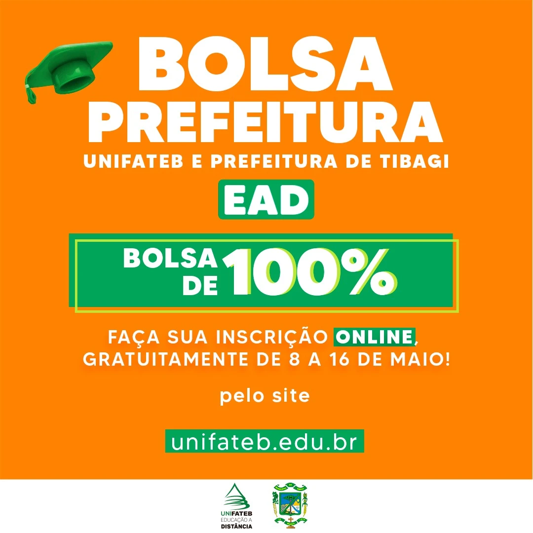 As inscrições podem ser feitas online até o dia 16 de maio (próxima terça-feira) através DESTE LINK https://conteudo.unifateb.edu.br/bolsa-prefeitura-2023-2 ou então no polo da UNIFATEB, que fica na Praça Edmundo Mercer nº 168. A prova presencial será realizada no dia 28 de maio (domingo).