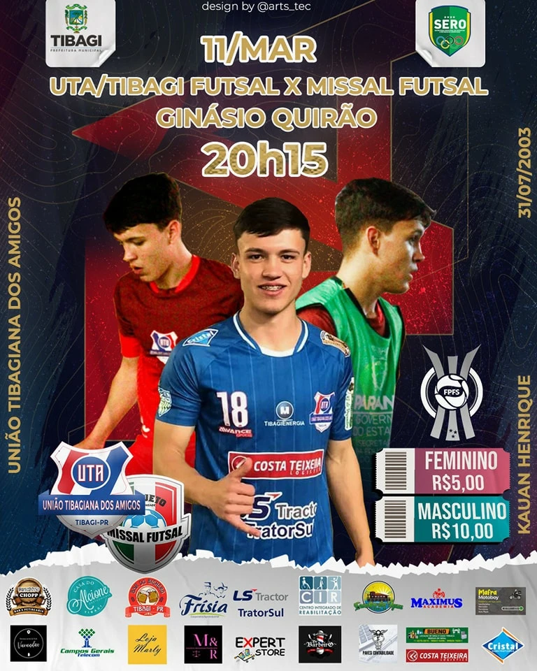 COM ASSESSORIAS - A Prefeitura de Tibagi, através da Secretaria de Esporte e Recreação Orientada (SERO), informa que o UTA/Tibagi Futsal faz a sua estreia em casa no Campeonato Paranaense de Futsal – Série Prata neste sábado (11).