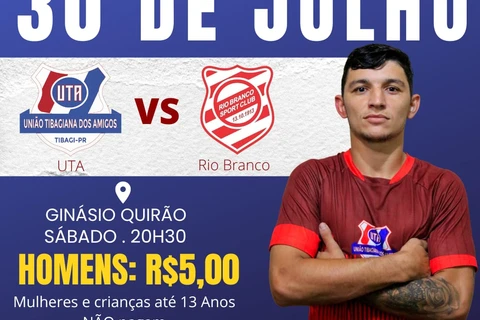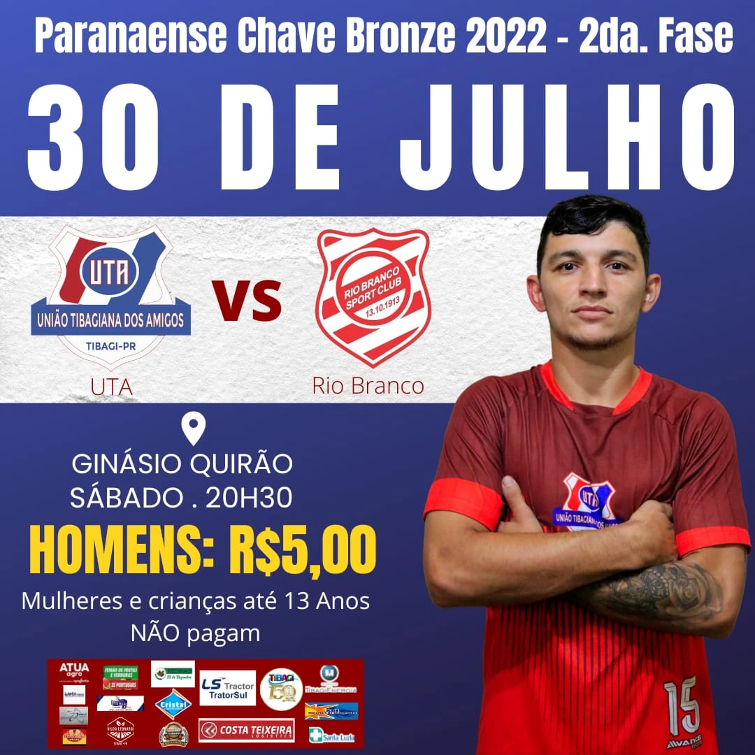 COM ASSESSORIAS - A Prefeitura de Tibagi, através da Secretaria de Esporte e Recreação Orientada (SERO), informa que o UTA/Tibagi joga neste sábado (30) no ginásio Quirão contra o Rio Branco Futsal, de Paranaguá, em partida válida pela segunda rodada da 2ª fase do Campeonato Paranaense de Futsal – série Bronze.