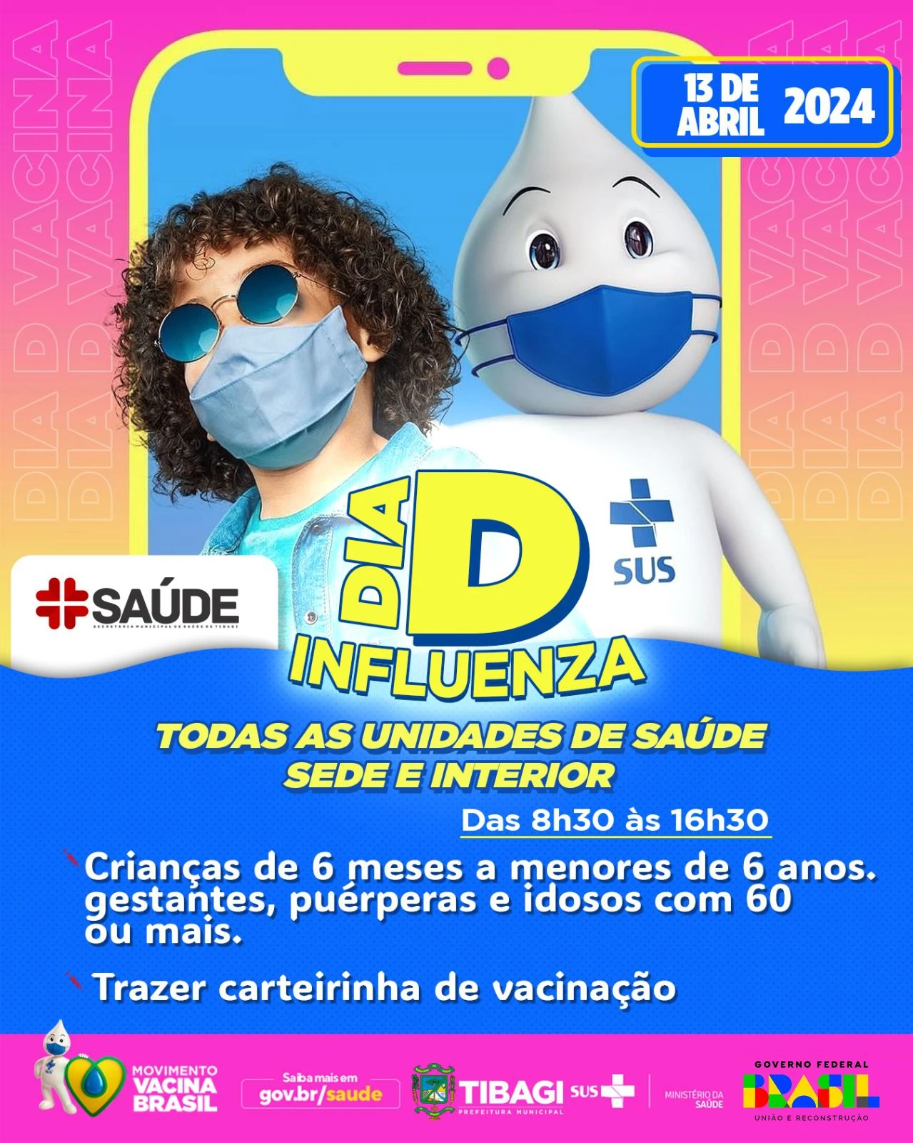 A Secretaria de Saúde de Tibagi convida a toda a população para participar do Dia D da Vacinação contra a Influenza. É importante que as pessoas se mobilizem e levem seus filhos, pais e avós para se vacinar. A vacinação é um ato de cuidado individual e coletivo, que contribui para a proteção da saúde de toda a comunidade.