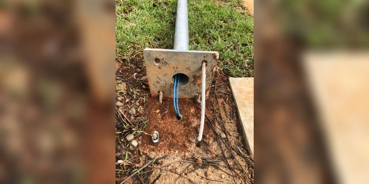 Isso porque um poste de iluminação pública foi arrancado na pista de caminhada no canteiro central da Avenida Manoel das Dores.